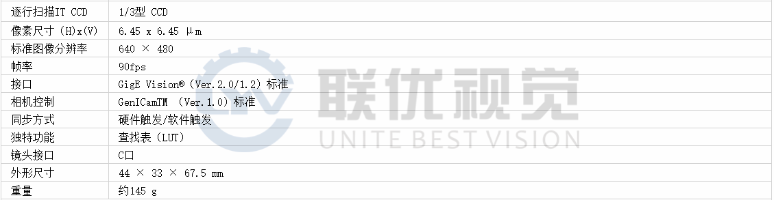 產品簡介●自由運行讀取●特殊觸發模式:批量觸發(bulk),序列(Sequential)●幀率控制●自動增益控制●GigE Vision?Version1.2●外觀尺寸:44(W)x33(H)x67.5(D)mm●C mount●高抗震動和撞擊